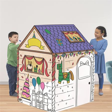 Játékház, színezhető, karton, FELLOWES, Szülinapi házikó
