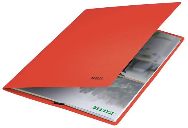 Gumis mappa, karton, A4, LEITZ "Recycle", piros