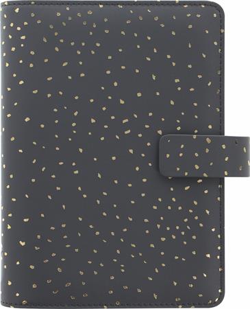 Kalendárium, gyűrűs, betétlapokkal, pocket méret, FILOFAX, "Confetti", fekete