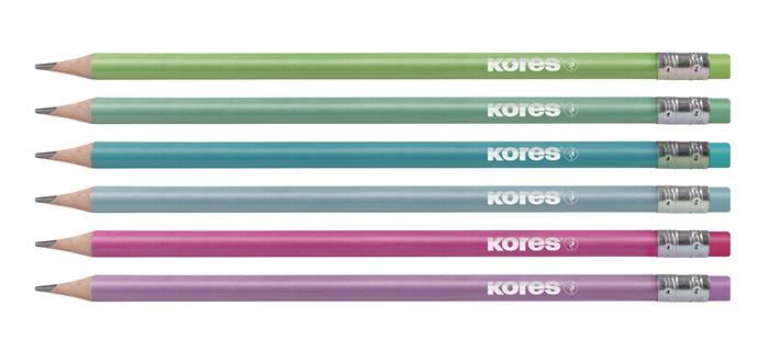 KezdőlapIrodaszerekÍrószerekGrafit- és színes ceruzákGrafitceruza radírral, HB, háromszögletű, KORES "GRAFITOS Style", vegyes metál színek