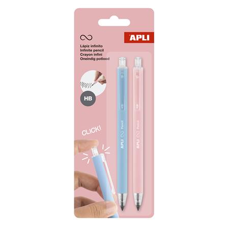 Töltőceruza, HB, nyomógombos, APLI "Infinite Click", kék és rózsaszín