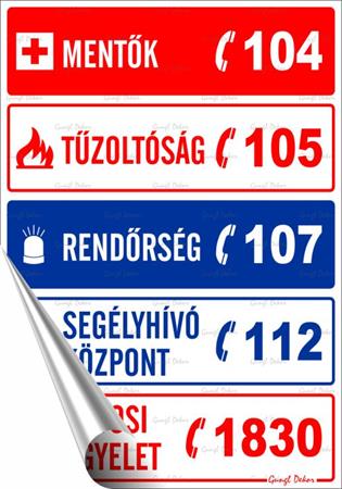 Információs matrica, 25x17,5 cm, "Segélyhívószámok"